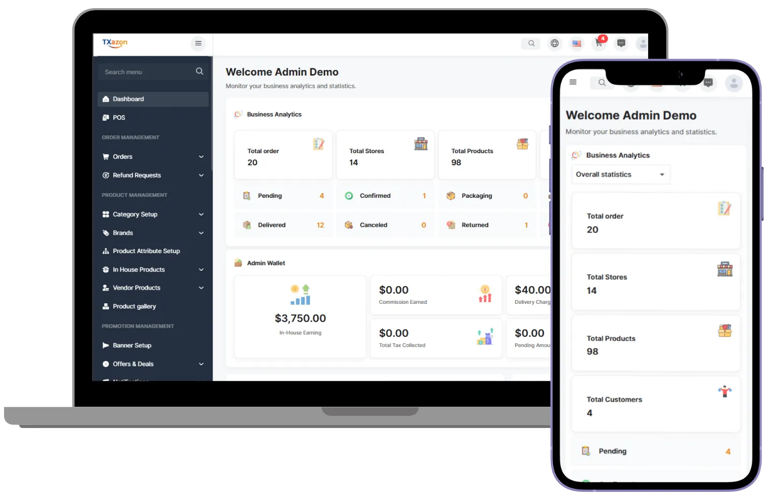 TechXons provides intuitive web panels for users, vendors, and admins of Amazon Clone, ensuring seamless management and a smooth eCommerce experience.