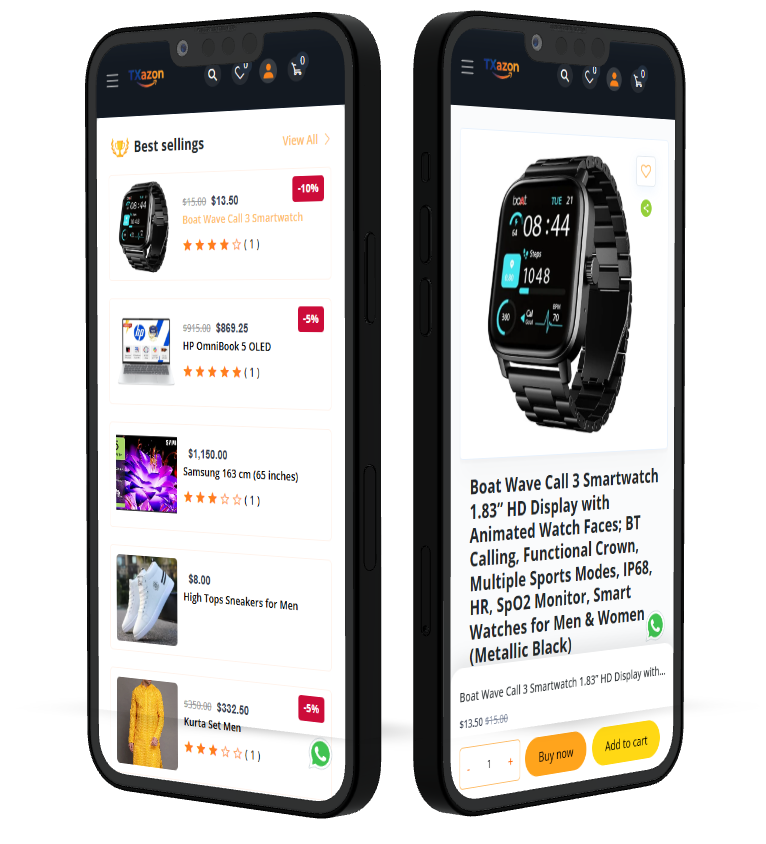 Experience hassle-free eCommerce with TechXons iOS apps for users, vendors, and delivery partners of Amazon Clone, ensuring seamless operations and smooth shopping.